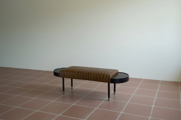 Savor the elegance of our high-end bench, which is expertly made from the best solid mango wood and covered in luxurious top grain leather. With its classic elegance and superb craftsmanship, this magnificent piece effortlessly combines comfort and style to elevate your living area, entryway or as a bed foot board bench. Perfect as a modern bench and an ideal entryway bench, this exquisitely designed bench with 2 half round side tables space to enjoy your favorite drink in bedroom and living room or to place your accessories at the entryway, will add timeless beauty and sophistication to your home.